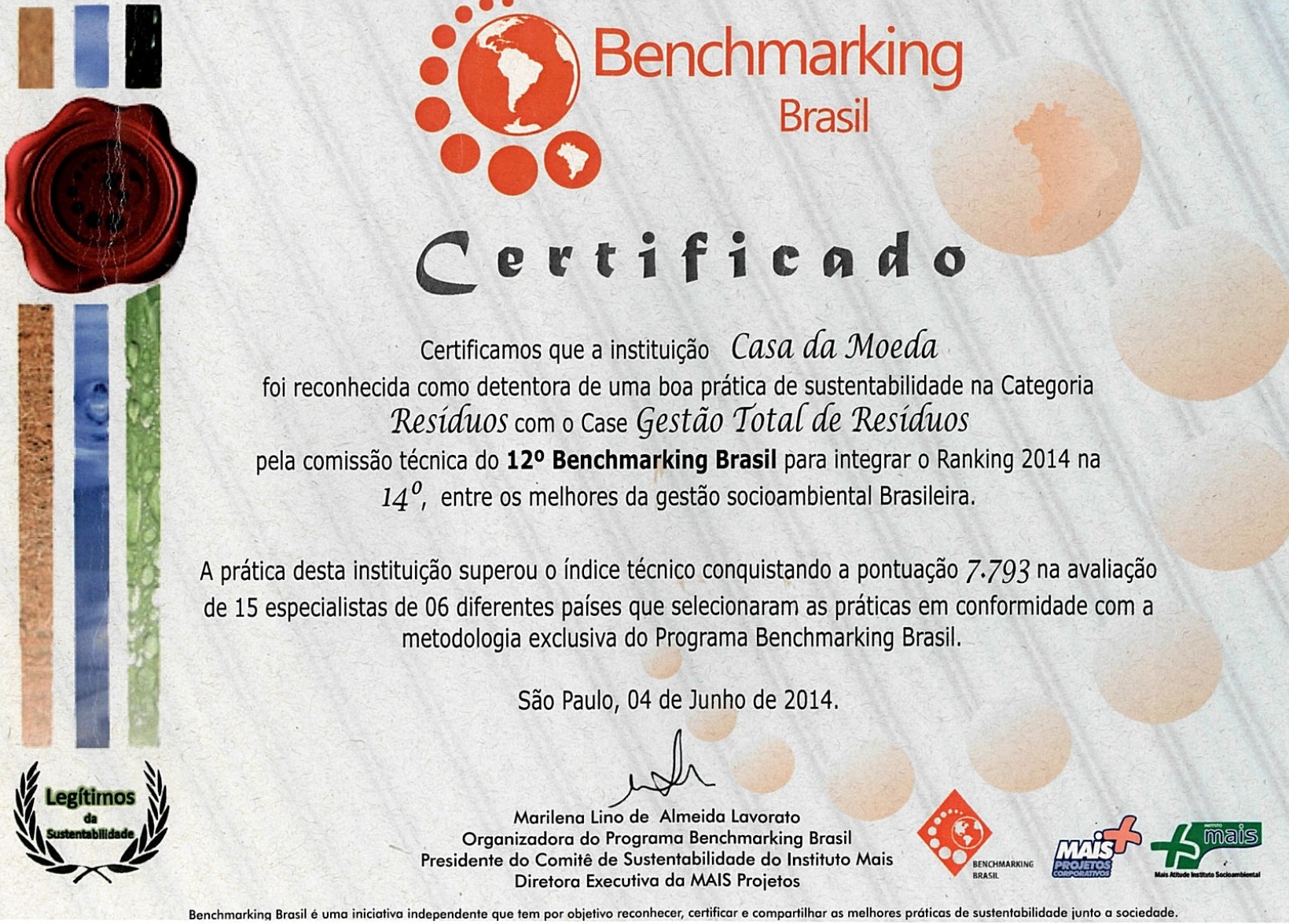 Com o case “Reaproveitamento de água em processo gráfico (Sistema Aquasave)”, a Casa da Moeda garantiu a 17ª posição, entre 85 instituições inscritas, no 11º prêmio Benchmarking Brasil, um programa de incentivo à sustentabilidade que reconhece as empresas com as melhores práticas socioambientais do país.